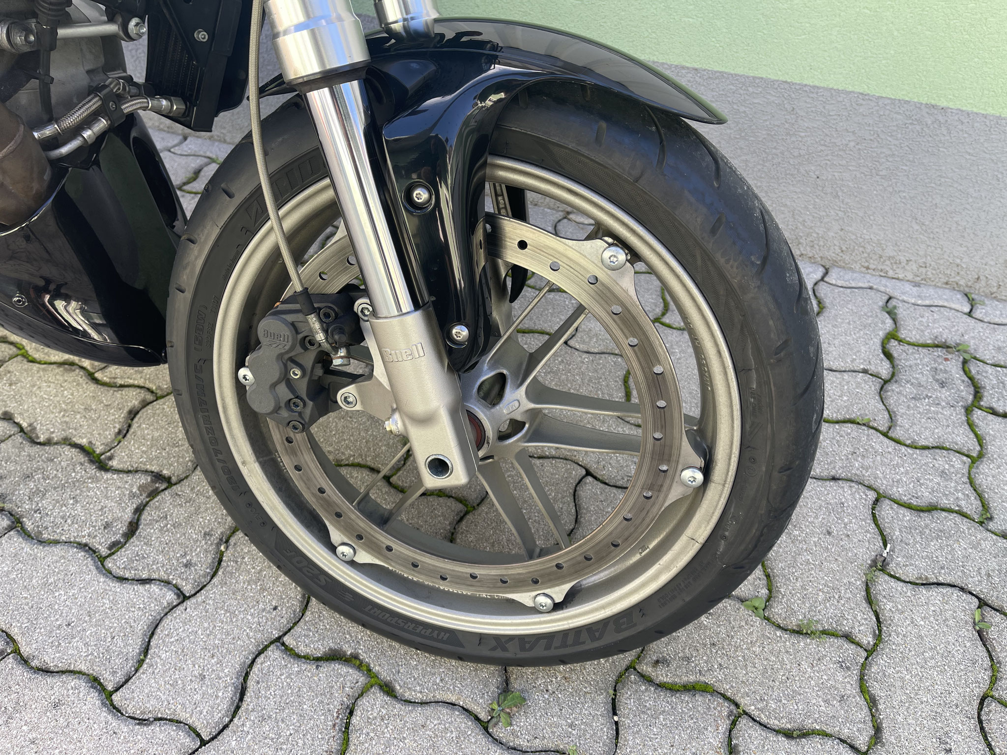 Tank im Rahmen, Motoröl in der Schwinge, Große Bremsscheibe vorn. Ein tolles Konzept für dieses Motorrad mit Harley Motor.